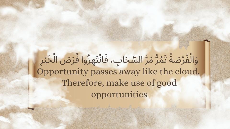 وَالْفُرْصَةُ تَمُرُّ مَرَّ السَّحَابِ