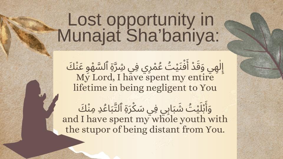 and I have spent my whole youth with the stupor of being distant from You. (al-Munājāt ash-Shaʿbāniyyah)